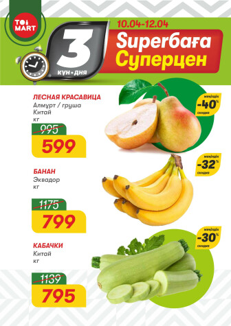 . Искренне надеемся что информация об акции "Только 3 дня суперцен!" сроком от 10 Апреля до 12 Апреля которая проходит в городе Алматы станет полезной для Вас.