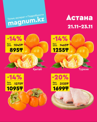 . Искренне надеемся что информация об акции "Акция выходного дня! (Астана)" сроком от 21 Ноября до 23 Ноября которая проходит в городе Астана станет полезной для Вас.
