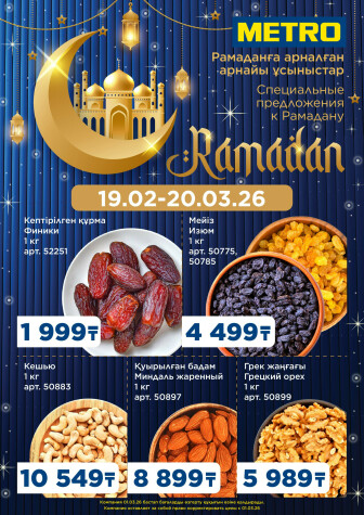 . Искренне надеемся что информация об акции "Скидки Рамадан" сроком от 19 Февраля до 20 Февраля которая проходит в городе Астана станет полезной для Вас.