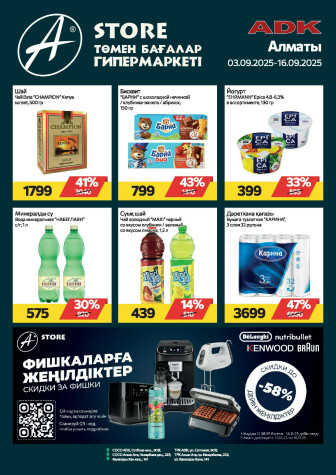 На данной странице представлены актуальные скидки и акции магазинов a-store . Искренне надеемся что информация об акции "Online каталог (Алматы)" сроком от 3 Қыркүйек до 16 Қыркүйек которая проходит в городе Алма-Ата станет полезной для Вас.