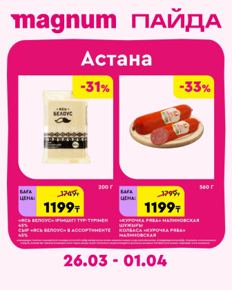 . Искренне надеемся что информация об акции "Новая неделя – новые скидки! (Астана)" сроком от 26 Наурызда до 1 Сәуірде которая проходит в городе Астана станет полезной для Вас.