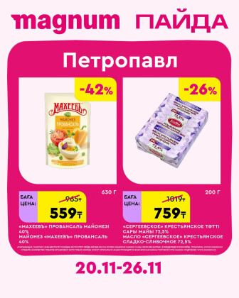 . Искренне надеемся что информация об акции "Новая неделя – новые скидки! (Петропавловск)" сроком от 20 Қарашада до 26 Қарашада которая проходит в городе Петропавловск станет полезной для Вас.