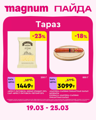 . Искренне надеемся что информация об акции "Новая неделя – новые скидки! (Тараз)" сроком от 19 Наурызда до 25 Наурызда которая проходит в городе Тараз станет полезной для Вас.