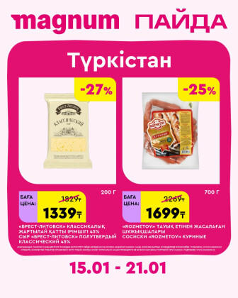 . Искренне надеемся что информация об акции "Новая неделя – новые скидки! (Туркестан)" сроком от 15 Қаңтарда до 21 Қаңтарда которая проходит в городе Туркестан станет полезной для Вас.