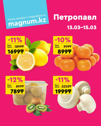 . Искренне надеемся что информация об акции "Акция выходного дня! (Петропавловск)" сроком от 13 Марта до 15 Марта которая проходит в городе Петропавловск станет полезной для Вас.