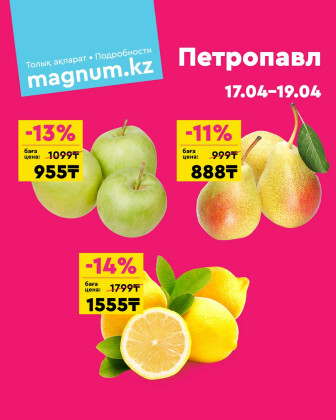 . Искренне надеемся что информация об акции "Акция выходного дня! (Петропавловск)" сроком от 17 Апреля до 19 Апреля которая проходит в городе Петропавловск станет полезной для Вас.