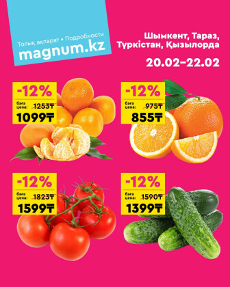 . Искренне надеемся что информация об акции "Акция выходного дня! (Туркестан, Тараз, Кызылорда, Шымкент)" сроком от 20 Февраля до 22 Февраля которая проходит в городе Шымкент станет полезной для Вас.