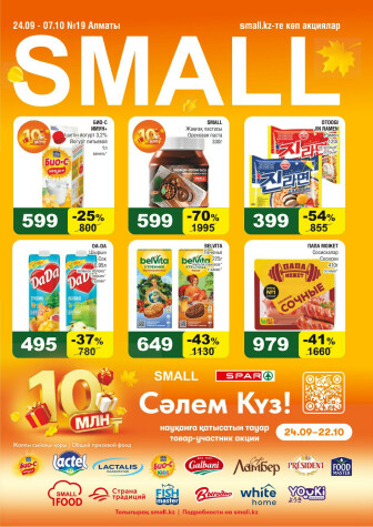 . Искренне надеемся что информация об акции "Акционная листовка (Алматы)" сроком от 24 Сентября до 7 Октября которая проходит в городе Алматы станет полезной для Вас.