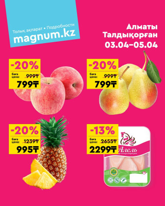 . Искренне надеемся что информация об акции "Акция выходного дня! (Алматы, Талдыкорган)" сроком от 3 Апреля до 5 Апреля которая проходит в городе Алматы станет полезной для Вас.