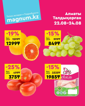 . Искренне надеемся что информация об акции "Акция выходного дня! (Алматы, Талдыкорган)" сроком от 22 Августа до 24 Августа которая проходит в городе Алматы станет полезной для Вас.