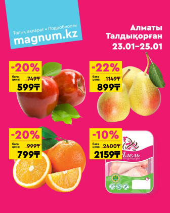 . Искренне надеемся что информация об акции "Акция выходного дня! (Алматы, Талдыкорган)" сроком от 23 Января до 25 Января которая проходит в городе Алматы станет полезной для Вас.