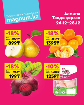 . Искренне надеемся что информация об акции "Акция выходного дня! (Алматы, Талдыкорган)" сроком от 26 Декабря до 28 Декабря которая проходит в городе Алматы станет полезной для Вас.