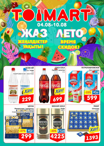. Искренне надеемся что информация об акции "Лето время скидок!" сроком от 4 Августа до 10 Августа которая проходит в городе Алматы станет полезной для Вас.