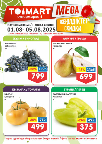. Искренне надеемся что информация об акции "Мегаскидки" сроком от 1 Августа до 5 Августа которая проходит в городе Алматы станет полезной для Вас.