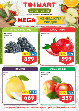 . Искренне надеемся что информация об акции "Мегаскидки" сроком от 19 Сентября до 23 Сентября которая проходит в городе Алматы станет полезной для Вас.