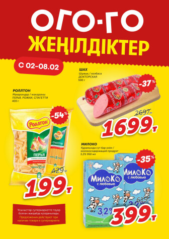 . Искренне надеемся что информация об акции "Ого-го какие скидки!" сроком от 2 Февраля до 8 Февраля которая проходит в городе Алматы станет полезной для Вас.