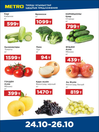 . Искренне надеемся что информация об акции "Щедрые предложения (Алматы)" сроком от 24 Октября до 26 Октября которая проходит в городе Алматы станет полезной для Вас.