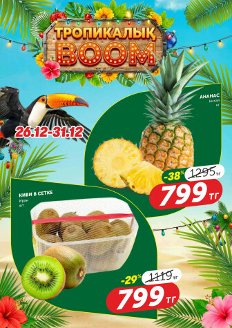 . Искренне надеемся что информация об акции "Тропический BOOOM!" сроком от 26 Декабря до 31 Декабря которая проходит в городе Алматы станет полезной для Вас.