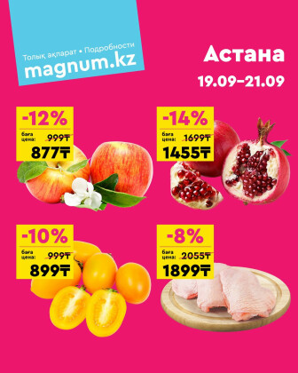 . Искренне надеемся что информация об акции "Акция выходного дня! (Астана)" сроком от 19 Сентября до 21 Сентября которая проходит в городе Астана станет полезной для Вас.