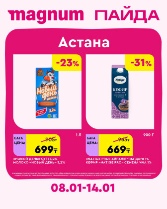 . Искренне надеемся что информация об акции "Новая неделя – новые скидки! (Астана)" сроком от 8 Января до 14 Января которая проходит в городе Астана станет полезной для Вас.