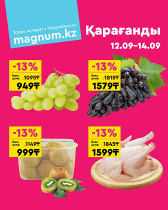 . Искренне надеемся что информация об акции "Акция выходного дня! (Караганда)" сроком от 12 Сентября до 14 Сентября которая проходит в городе Караганда станет полезной для Вас.