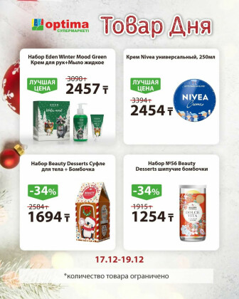 . Искренне надеемся что информация об акции "Товар дня" сроком от 17 Декабря до 19 Декабря которая проходит в городе Караганда станет полезной для Вас.