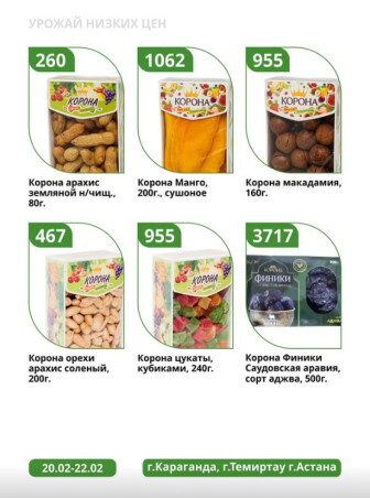 . Искренне надеемся что информация об акции "Урожай низких цен" сроком от 20 Ақпанда до 22 Ақпанда которая проходит в городе Караганда станет полезной для Вас.