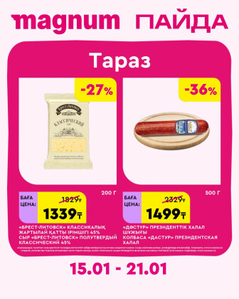 Текущие и будущие каталоги акций "Новая неделя – новые скидки! (Тараз) (15 - 21 Қаңтарда 2026)" супермаркетов Magnum.kz