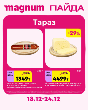 Текущие и будущие каталоги акций "Новая неделя – новые скидки! (Тараз) (18 - 24 Желтоқсанда 2025)" супермаркетов Magnum.kz