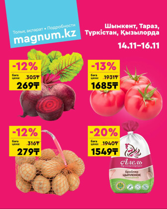 . Искренне надеемся что информация об акции "Акция выходного дня! (Туркестан, Тараз, Кызылорда, Шымкент)" сроком от 14 Ноября до 16 Ноября которая проходит в городе Кызылорда станет полезной для Вас.
