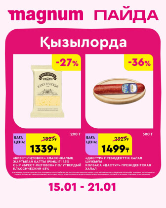 Текущие и будущие каталоги акций "Новая неделя – новые скидки! (Кызылорда) (15 - 21 Января 2026)" супермаркетов Magnum