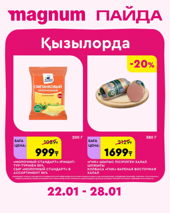 Текущие и будущие каталоги акций "Новая неделя – новые скидки! (Кызылорда) (22 - 28 Января 2026)" супермаркетов Magnum