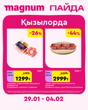 . Искренне надеемся что информация об акции "Новая неделя – новые скидки! (Кызылорда)" сроком от 29 Января до 4 Февраля которая проходит в городе Кызылорда станет полезной для Вас.
