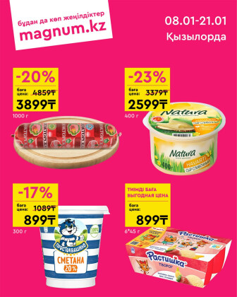 . Искренне надеемся что информация об акции "Новая волна скидок (Кызылорда)" сроком от 8 Января до 21 Января которая проходит в городе Кызылорда станет полезной для Вас.