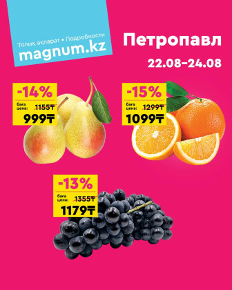 . Искренне надеемся что информация об акции "Акция выходного дня! (Петропавловск)" сроком от 22 Августа до 24 Августа которая проходит в городе Петропавловск станет полезной для Вас.