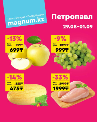 . Искренне надеемся что информация об акции "Акция выходного дня! (Петропавловск)" сроком от 29 Августа до 1 Сентября которая проходит в городе Петропавловск станет полезной для Вас.
