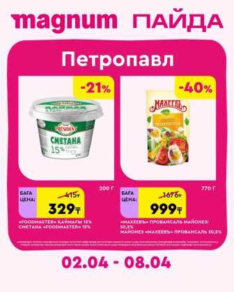 Текущие и будущие каталоги акций "Новая неделя – новые скидки! (Петропавловск) (2 - 8 Апреля 2026)" супермаркетов Magnum