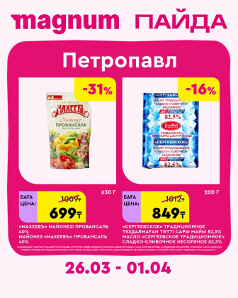 Текущие и будущие каталоги акций "Новая неделя – новые скидки! (Петропавловск) (26 Марта - 1 Апреля 2026)" супермаркетов Magnum