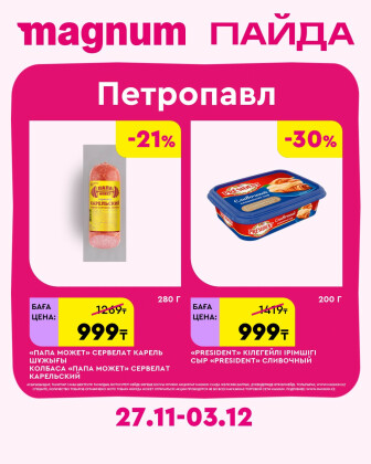 . Искренне надеемся что информация об акции "Новая неделя – новые скидки! (Петропавловск)" сроком от 27 Ноября до 3 Декабря которая проходит в городе Петропавловск станет полезной для Вас.
