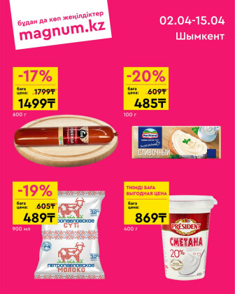 . Искренне надеемся что информация об акции "Новая волна скидок (Шымкент)" сроком от 2 Апреля до 15 Апреля которая проходит в городе Шымкент станет полезной для Вас.