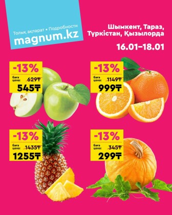 . Искренне надеемся что информация об акции "Акция выходного дня! (Туркестан, Тараз, Кызылорда, Шымкент)" сроком от 16 Января до 18 Января которая проходит в городе Тараз станет полезной для Вас.