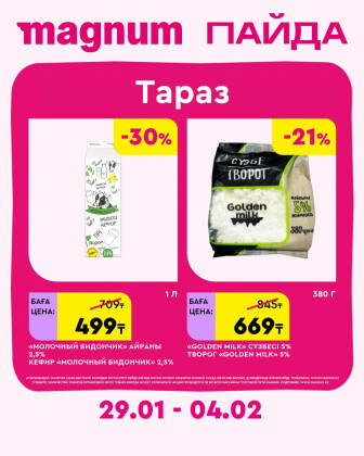 . Искренне надеемся что информация об акции "Новая неделя – новые скидки! (Тараз)" сроком от 29 Января до 4 Февраля которая проходит в городе Тараз станет полезной для Вас.