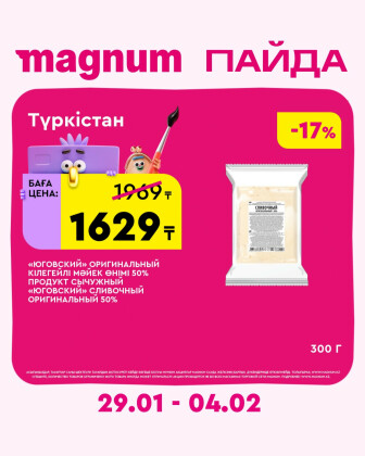 Текущие и будущие каталоги акций "Новая неделя – новые скидки! (Туркестан) (29 Января - 4 Февраля 2026)" супермаркетов Magnum