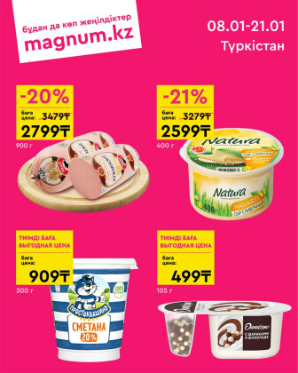 . Искренне надеемся что информация об акции "Новая волна скидок (Туркестан)" сроком от 8 Января до 21 Января которая проходит в городе Туркестан станет полезной для Вас.